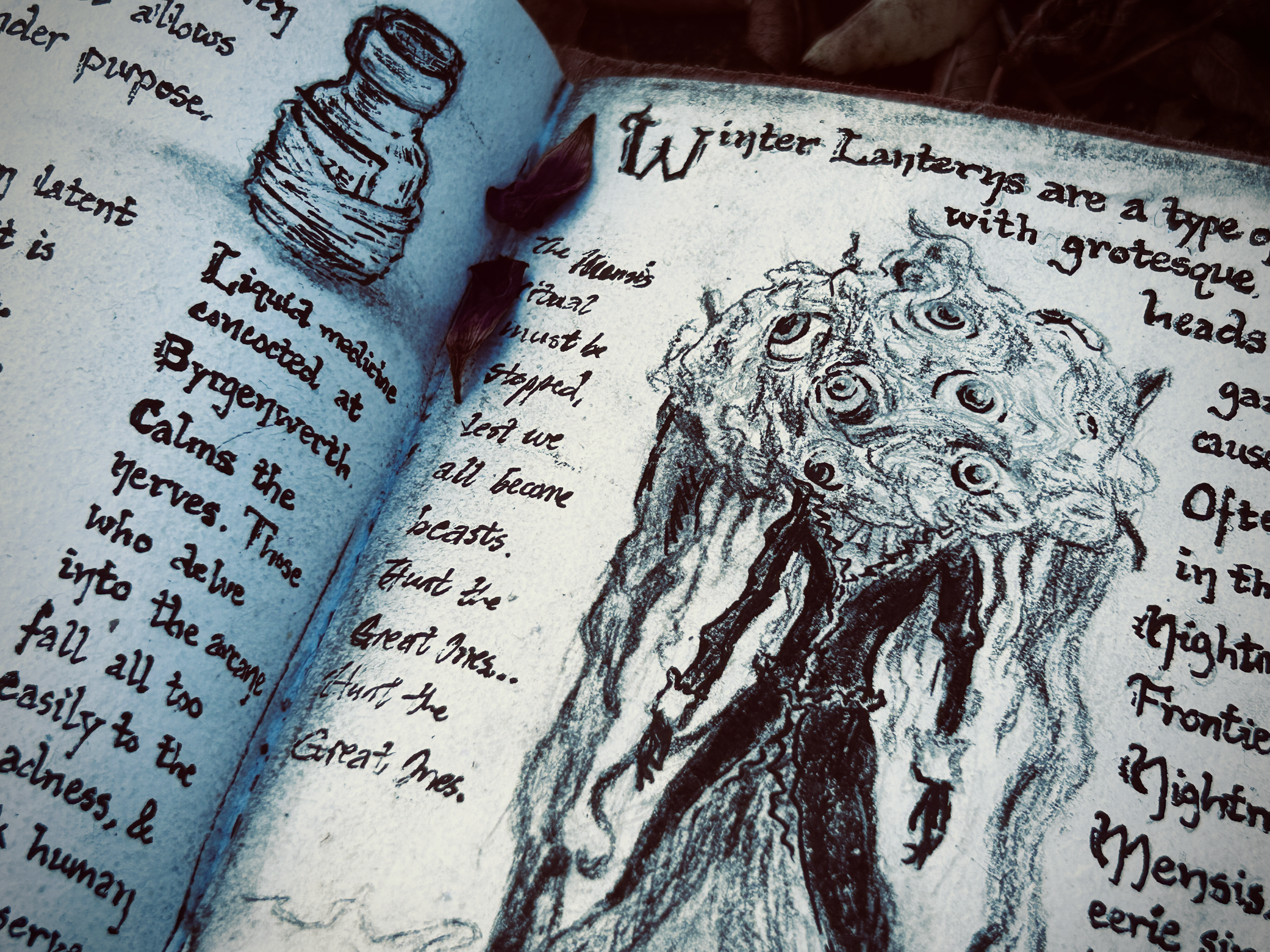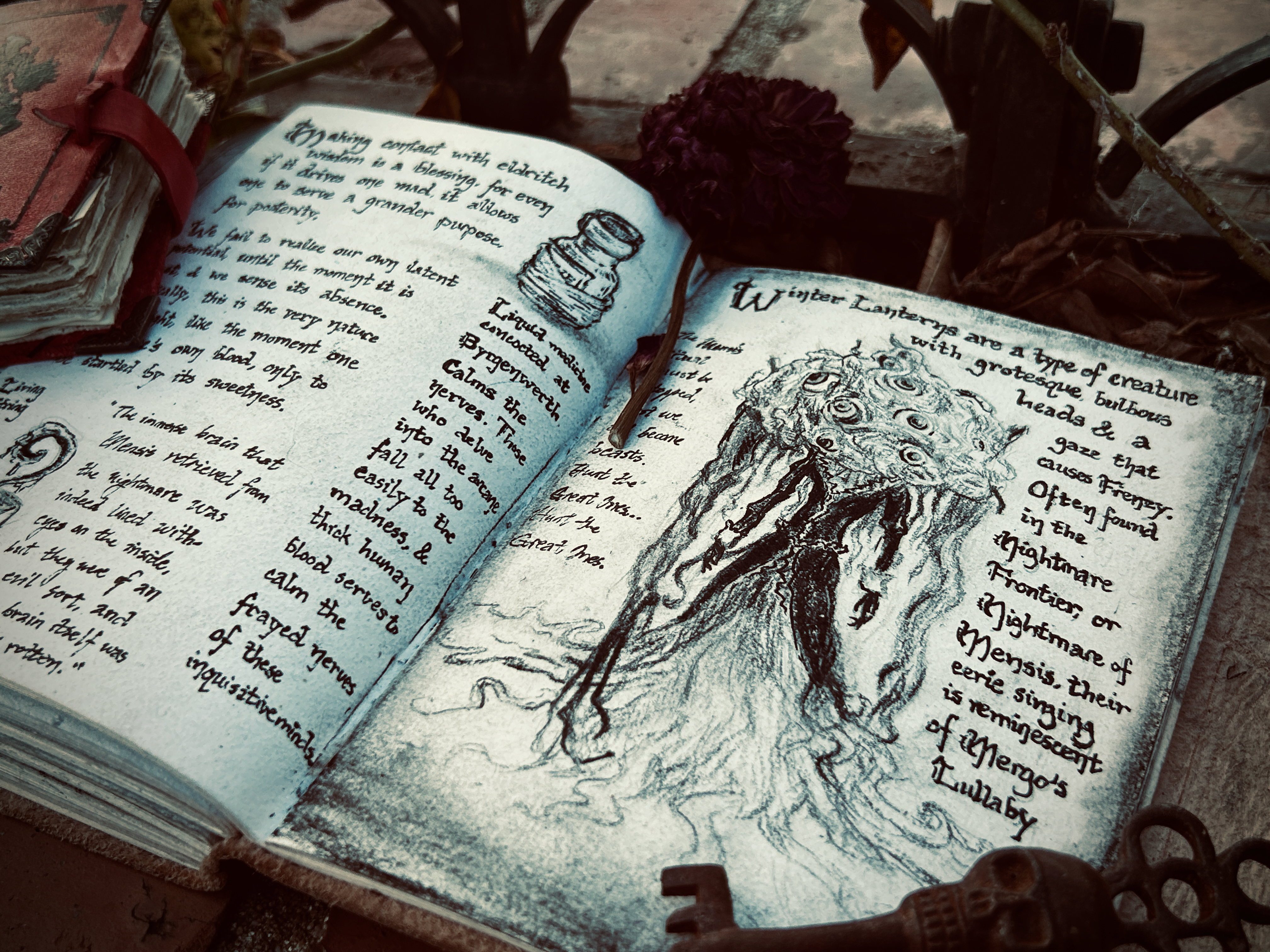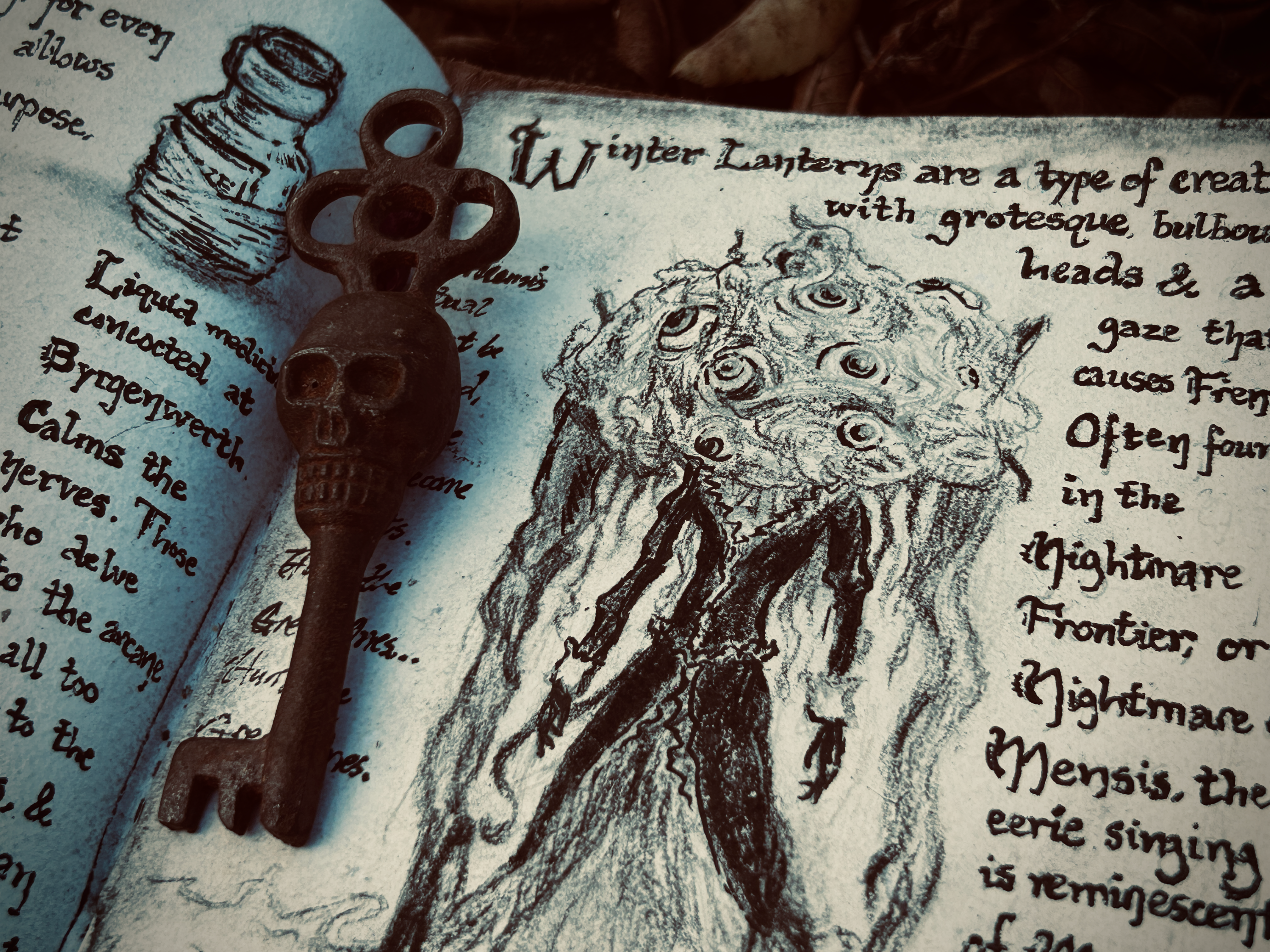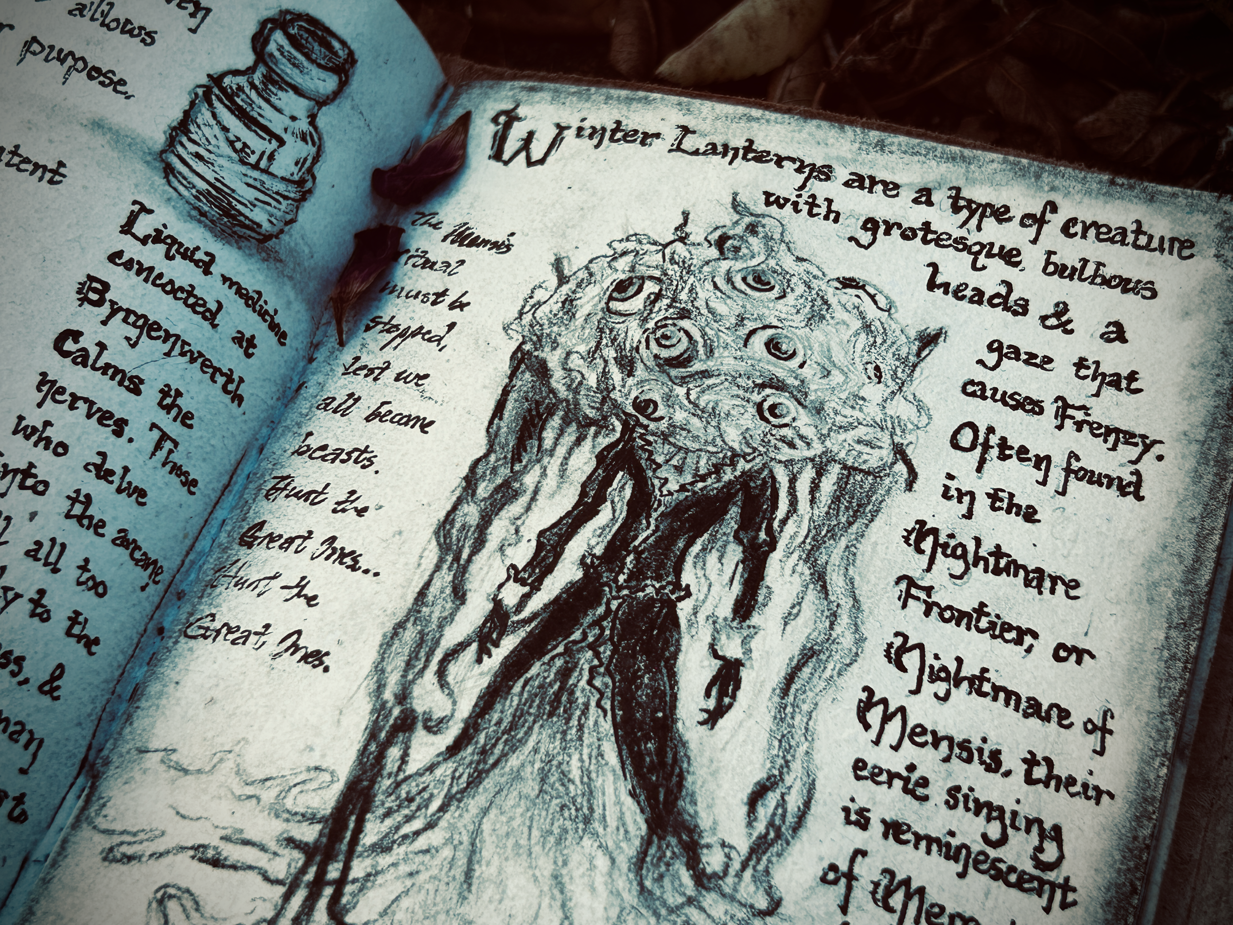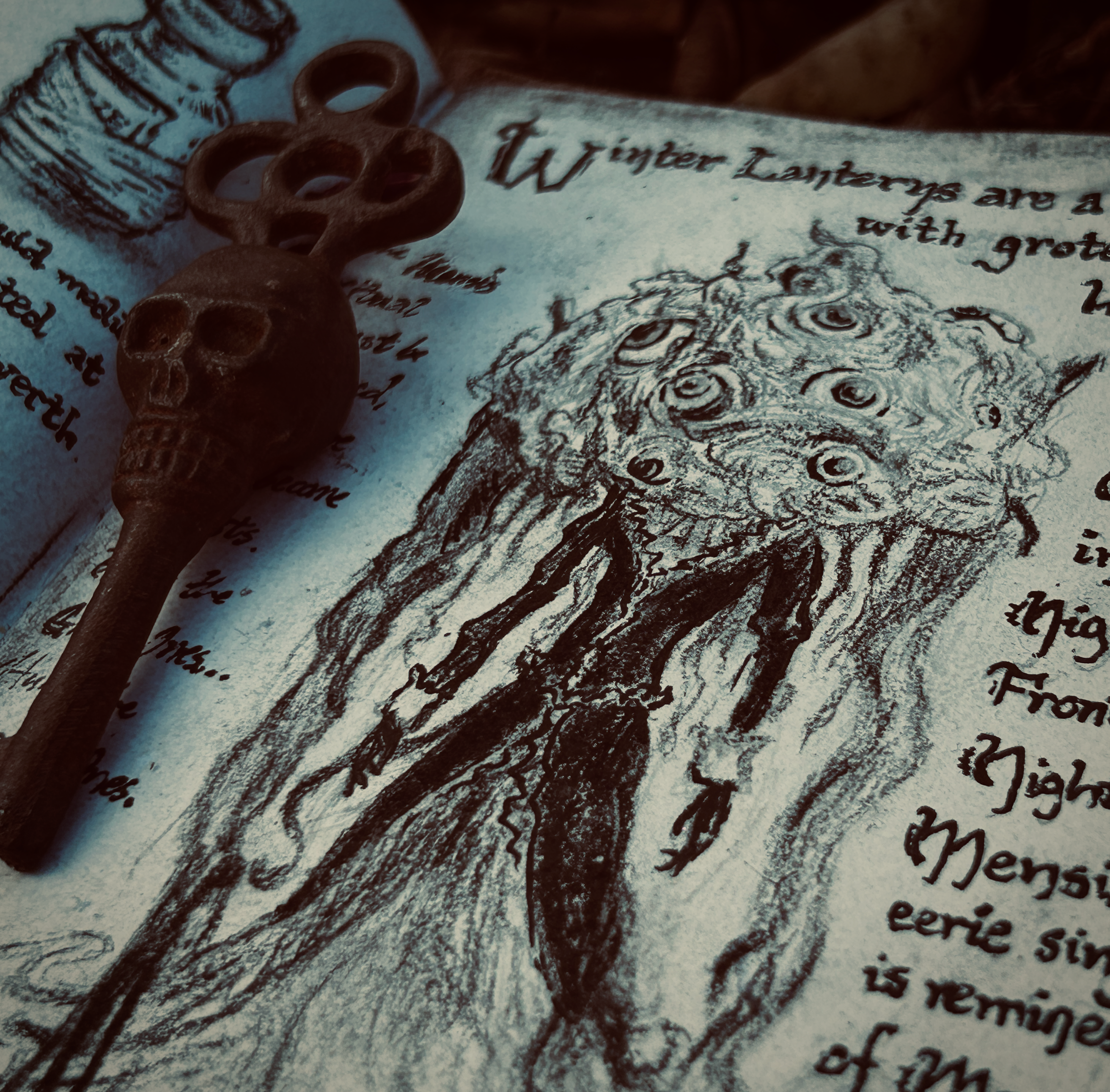The Winter Lanterns appear as grotesque amalgamations, part brain and part doll-like figure, their gaze alone a harbinger of death.