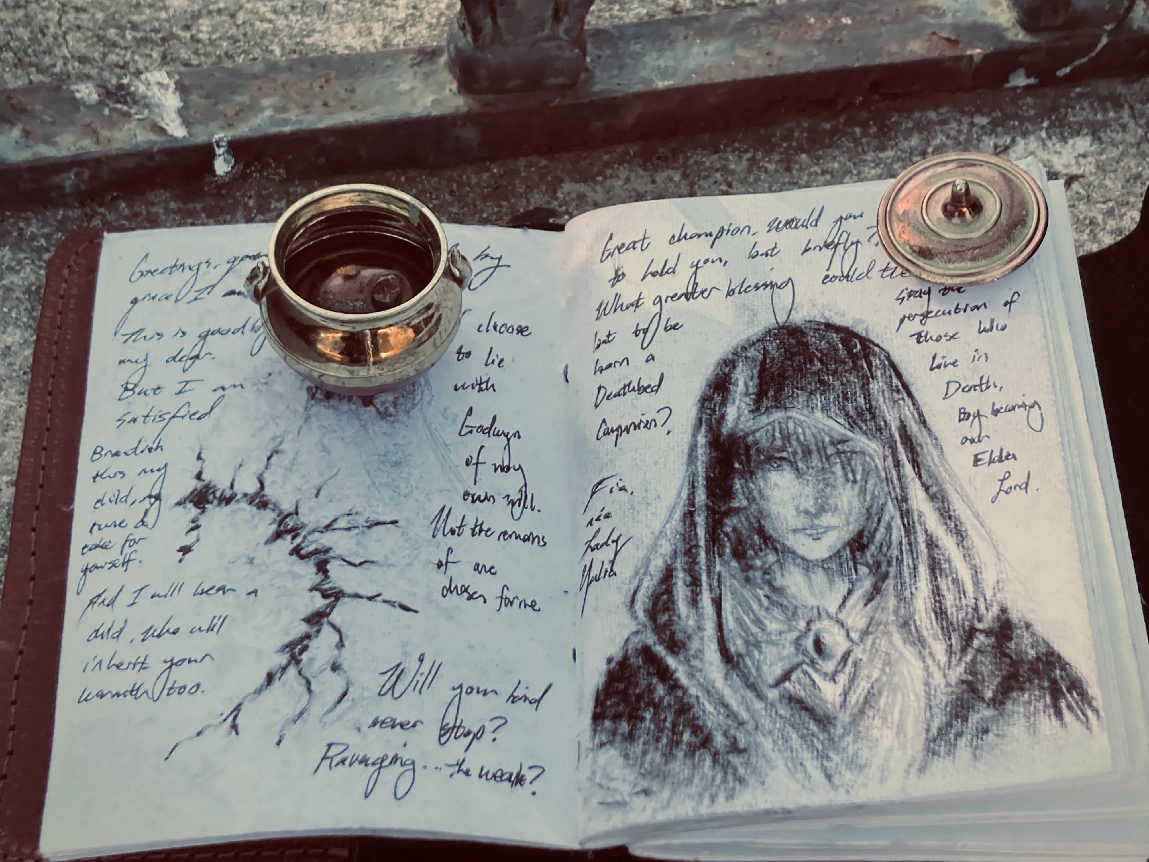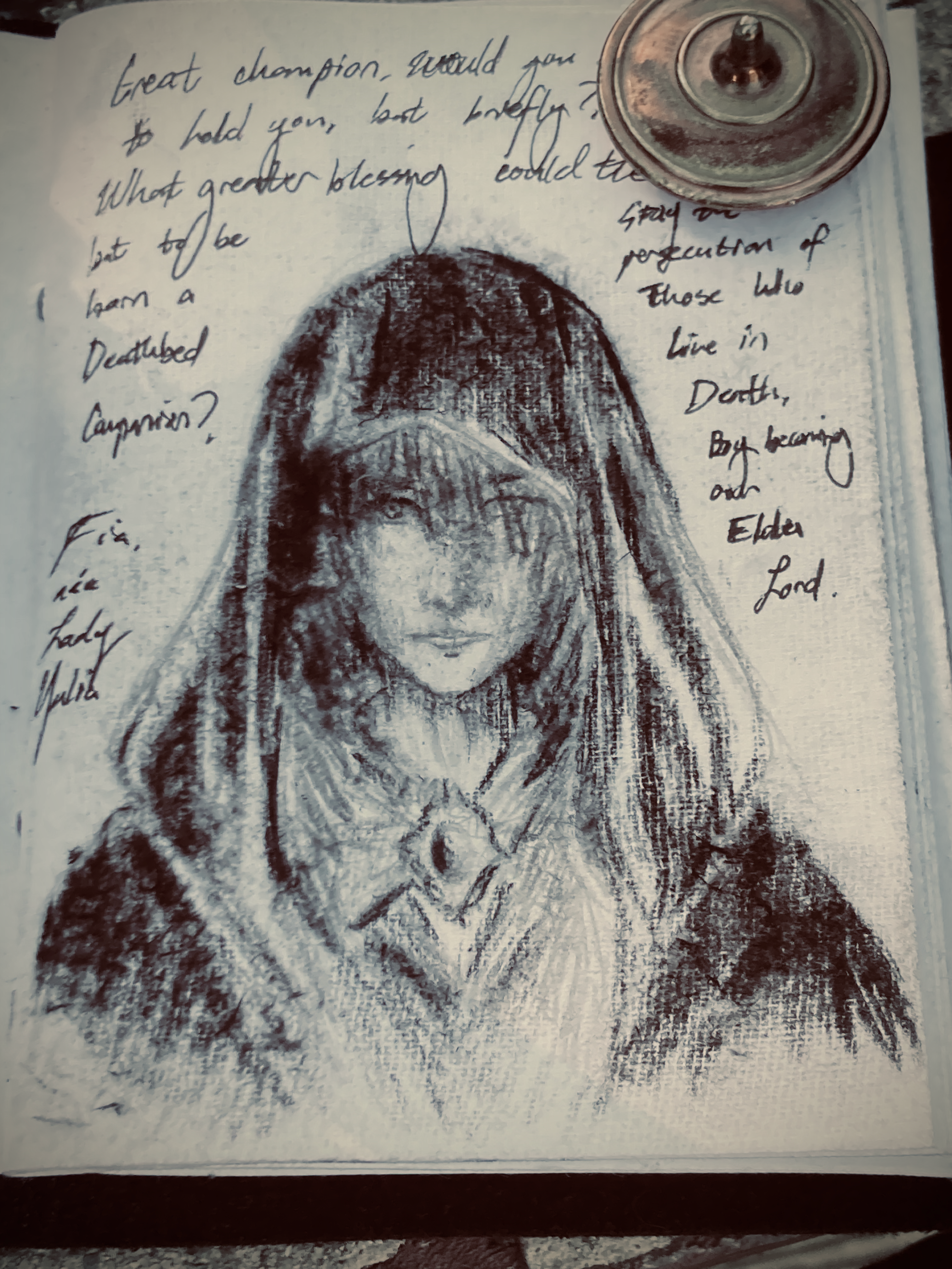 “Greetings, great champion called by grace. I am Fia. Circumstances have compelled my stay at the Roundtable Hold.”