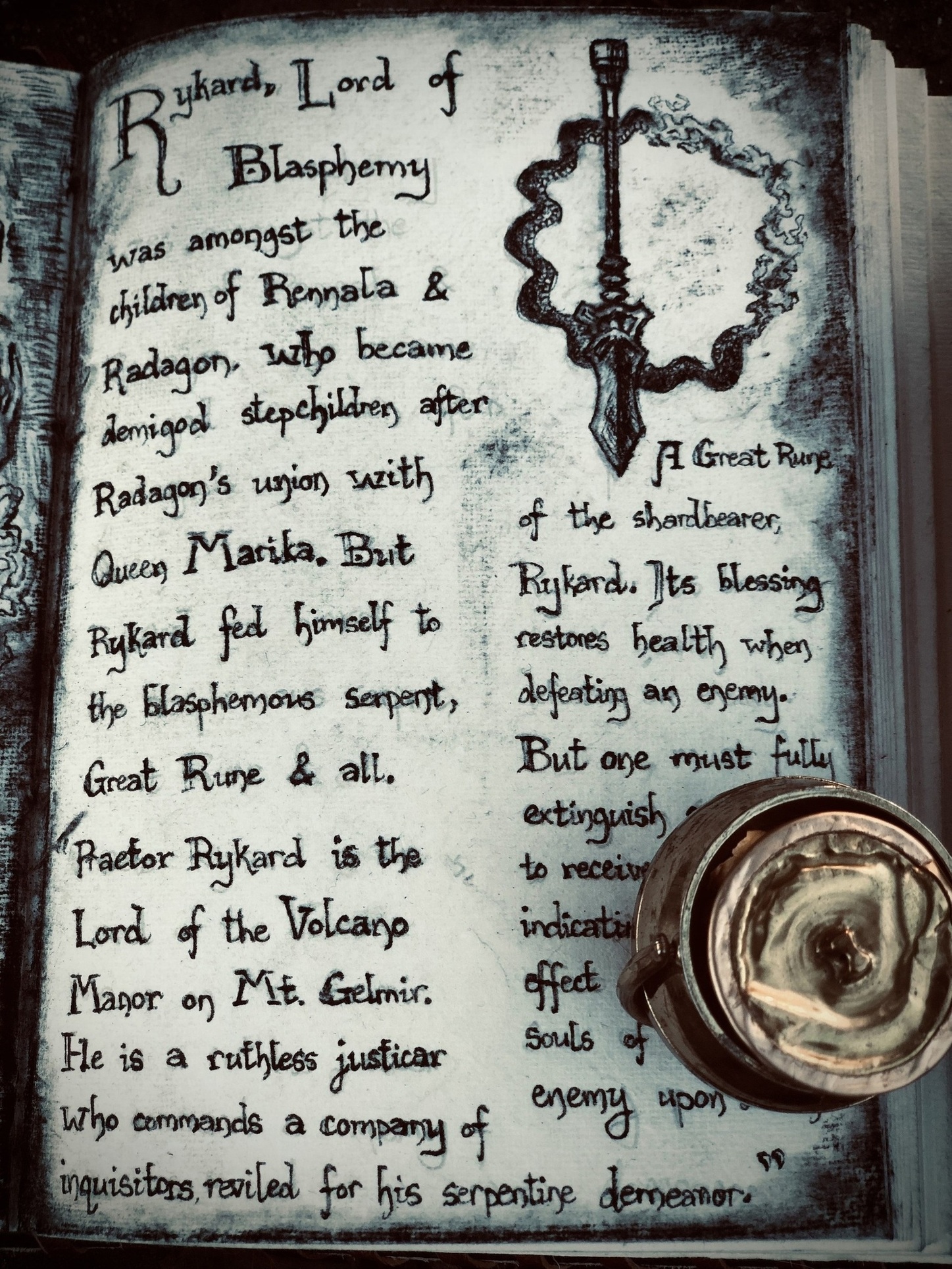 Rykard was amongst the children of Rennala and Radagon, who became demigod stepchildren after Radagon’s union with Queen Marika.