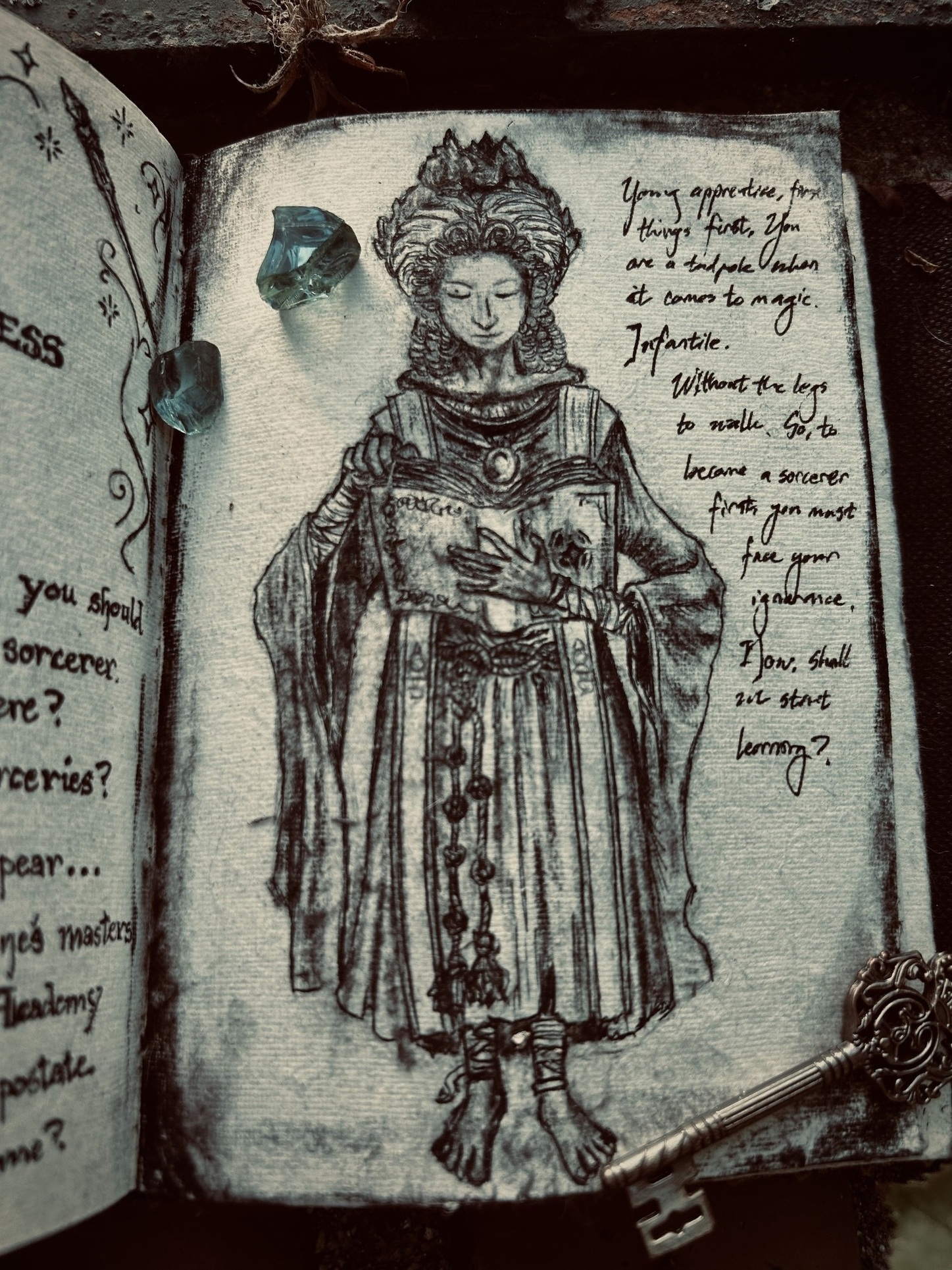 Young apprentice, first things first. You are a tadpole when it comes to magic. Infantile. Without the legs to walk. So, to become a sorcerer, first, you must face your ignorance. Now, shall we start learning?